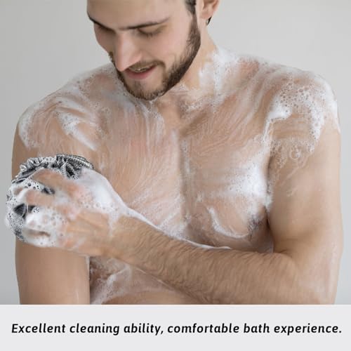 2 Pezzi Bagno doccia spugna, palla Doccia,Nera Spugne da Doccia Confortevole e Morbida Tessuto a Rete,Esfoliante palline di schiuma per Esfoliare per Uomini e Donne Spugna a Rete
