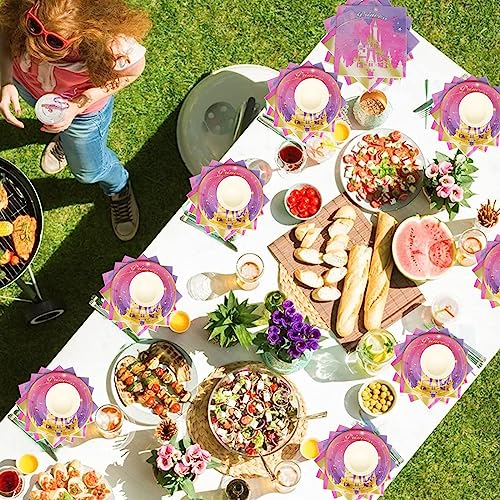 【Materiale di prima qualità】: Le stoviglie per la festa della principessa sono realizzate in carta di alta qualità, il motivo del castello rosa della principessa e i colori coordinati rendono il cibo più bello.