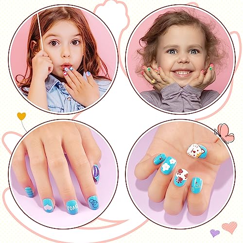 【Temi Multipli】: Unghie Finte per Bambini carine contengono diversi set di stili carini, ognuno con una diversa combinazione di colori, uno con 144 pezzi in totale. I colori vivaci e i motivi carini soddisfacendo facilmente le preferenze dei bambini.