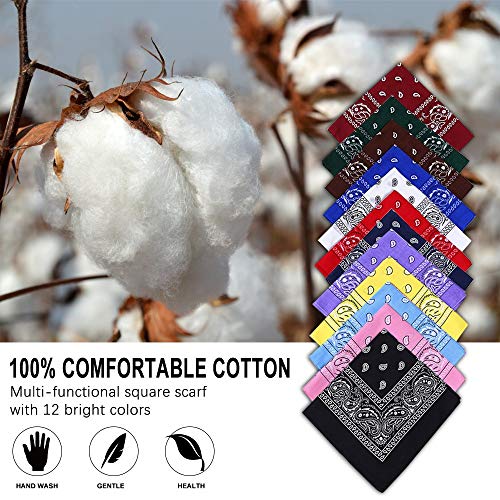 12 Pezzi Bandane per Cappelli, Bandana multifunzione, Sciarpa Fazzoletti da Taschino,Disegno Paisley, Bandana in 100% Cotone/Adatto a uomini e donne