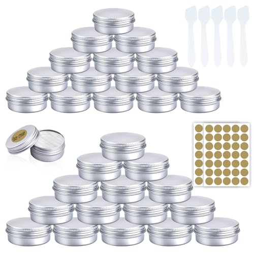 30 Pezzi Barattoli di Alluminio 15ml/20ml, Vasetto Vuoto Contenitori con Coperchio, Contenitori Cosmetici da Viaggio, Vasetti Alluminio Con Adesivo Rotondo e Cucchiaio Cosmetico per Lozione Crema
