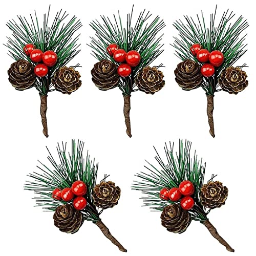 5 Pezzi Bastoncini Artificiali Bacche di Natale, Rami di Pino Artificiale, per Decorazioni da tavola per Feste di Natale in Giardino,per decorazioni natalizie, ghirlande e feste