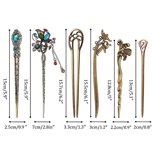 6 Pezzi Bastoncini Capelli Cinesi, Forcina Cinese Vintage, Bastoncini Capelli Retrò, Stick Capelli Vintage, Bacchette in Metallo per Capelli per Capelli Decorativi Acconciatura Fissa
