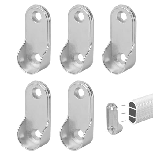 5 Pezzi Bastone armadio appendiabiti,Accessori armadio interno,Armadio Guardaroba, Cromato Accessori per armadio interno,Supporti Terminali Ovali per Guardaroba, Lega Zinco Staffa Staffa Tenda Doccia
