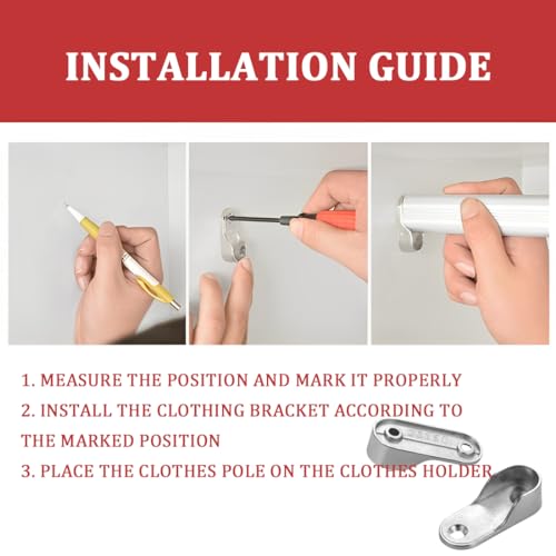 【Ampia applicazione】: la staffa per binario dell'armadio è ampiamente applicata nell'armadio di casa o nel negozio come staffa di supporto per sostenere un'asta dell'armadio per appendere vestiti, asciugamani o altro, ecc. Può essere utilizzata nel guardaroba e nel bagno o sul balcone.