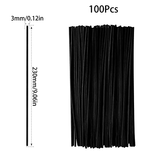 100 pezzi Bastoni di ricambio per diffusore a fibre per profumo fragranza(23cm*3mm, Nero)
