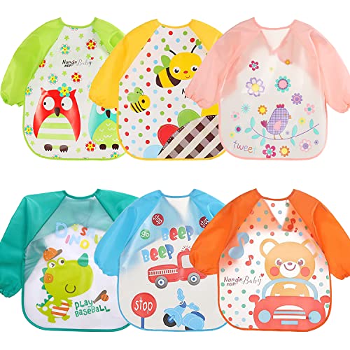 ✨【Bavaglini impermeabili】: 6 pezzi di bavaglini impermeabili a manica lunga con motivi diversi. Perfetto per bambini da 1 a 3 anni. (I modelli dei bavaglini impermeabili non sono unici, vengono inviati a caso e si basano principalmente sui prodotti ricevuti.)