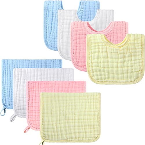 8 Pezzi Set Bavaglini in Mussola e Panni per Rutti, 20 x 10 Pollici (Colore Classico)