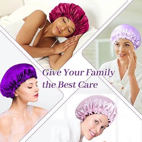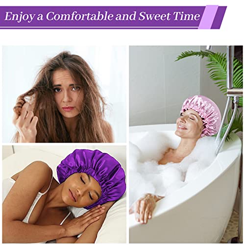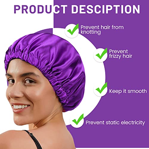 2 Pezzi Berretto da Notte Raso, Doppio Seta Cuffia per Capelli con Elastico a Banda Larga con 2 Elastici per Capelli, Grande Cuffia da Notte, Dormire Cappello per Donne Ragazza Capelli Ricci Cura