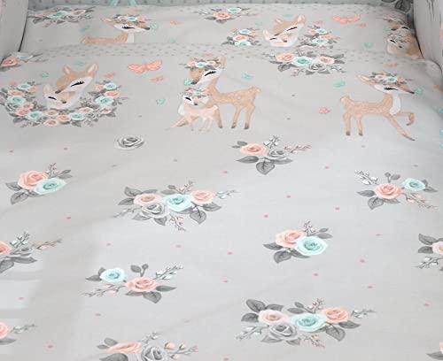 5 Pezzi Set di biancheria da letto per lettino 120 x 60 cm (Orsacchiotti Marroni) Cuscino piumino copripiumino e federa Lenzuolo con angoli in jersey - 100% cotone