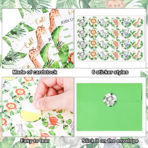 24 Pezzi di Biglietti d'Invito con Buste e Adesivi a Tema di Animali della Giungla e Safari per Feste di Compleanno a Tema e Baby Shower Invito di Partecipazione per Bambini e Ragazzi