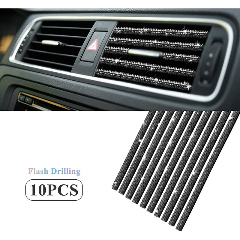 PACCHETTO INCLUSI: Riceverai 10 pezzi di Bling Car Air Outlet Trim, queste strisce di rivestimento per auto misurano ca. 8/20 cm di lunghezza, adatto per la decorazione dell'auto MATERIALE AFFIDABILE: Queste finiture per la ventilazione del condizionatore d'aria per auto sono realizzate in PVC cromato di alta qualità. La superficie è impreziosita da scintillanti diamanti bianchi. Sono resistenti all'abrasione e agli agenti chimici. Sono resistenti, non si rompono facilmente e non si sbiadiscono facilmente. Può supportare il tuo servizio a lungo termine FACILE DA USARE: Questi interni per auto in PVC cromato sono molto facili da usare. Prima dell'installazione, è sufficiente pulire l'uscita dell'aria del condizionatore d'aria, quindi confrontare le dimensioni dell'uscita dell'aria del condizionatore d'aria, tagliare la lunghezza dell'uscita dell'aria con le forbici, aprire il nastro decorativo a forma di U e fissarlo. Modelli applicabili: Queste modanature per prese d'aria sono adatte