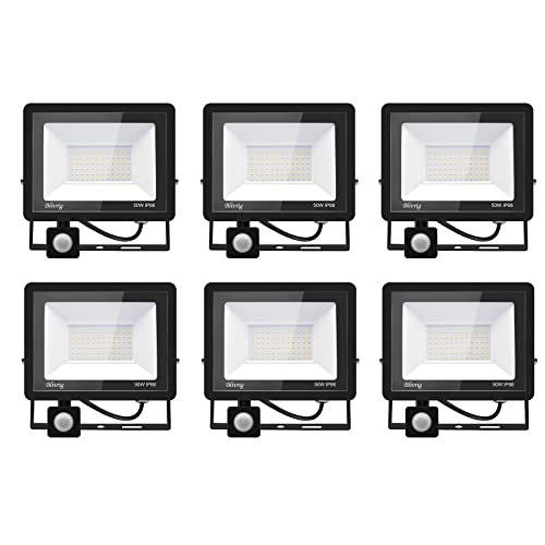 6 pezzi-Blivrig Faretto LED da Esterno con Sensore di Movimento 50W 5000LM Faro LED Esterno IP66 Impermeabile LED Esterno 6000K Bianco Freddo Lampada a Rsparmio LED per Cortile, Campo da Basket