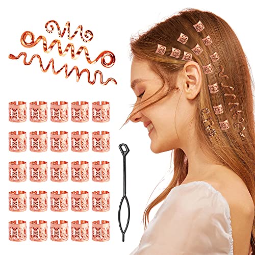 28 Pezzi Bobina dei Capelli Dreadlock Anelli di Capelli Treccia Metallo Polsini Accessori Trecce Regolabile Perline per Dreadlock Decorazione(Oro rosa)