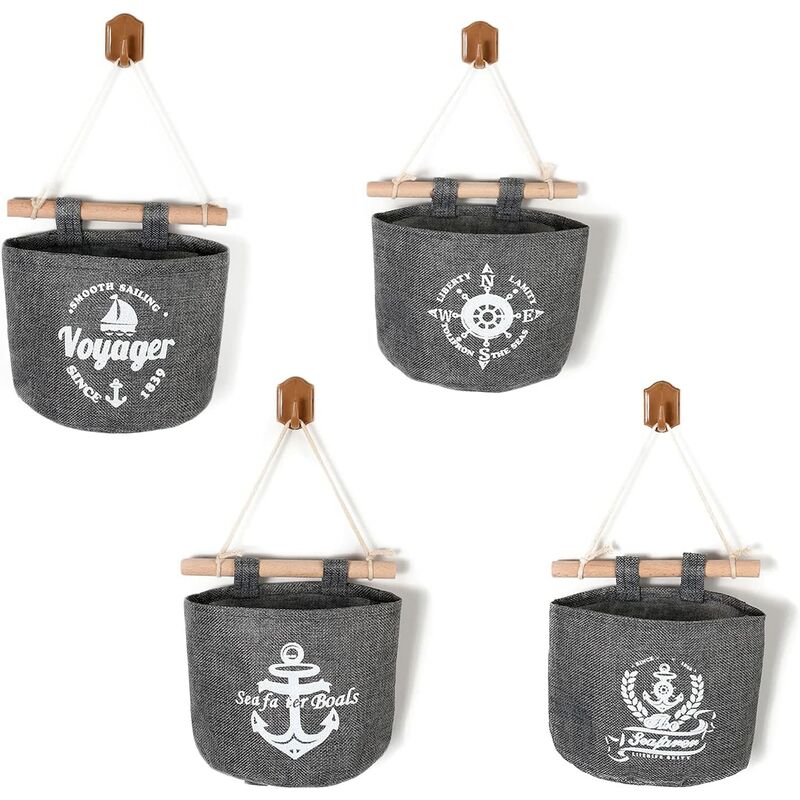 À propos de cet article MATÉRIAUX DE HAUTE QUALITÉ: Nos sacs de rangement suspendus sont en coton et toile + film PE imperméable, résistant à l'usure, difficile à déformer, imperméable, bonne perméabilité à l'acqua. Protezione dell'ambiente e della salute e soddisfare i requisiti di protezione dell'ambiente e della salute umana. Vari stili: ci sono quattro diverse versioni di questa borsa. Stoccaggio sospeso: ancora, timone, barca a vela, pannocchia di mais, 1 pezzo ciascuno. Borsa portaoggetti in stile marinaio. Design della borsa portaoggetti: il colore principale di questa borsa portaoggetti sospesa è il grigio e ogni stile ha un motivo diverso per distinguere i diversi stili. Sono legati con bastoncini di legno e corde per appenderli facilmente. Regalo squisito: questa custodia da parete è particolarmente adatta per essere regalata a familiari e amici, con un motivo marino unico, semplice e di alta qualità. Sarà una custodia estremamente delicata e facile da usare. Leggero e