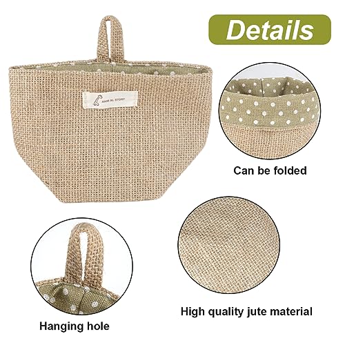 3 Pezzi Borsa Portaoggetti da Parete, Cestino Portaoggetti Pieghevole in Cotone e Lino con Manico Cestini di Stoccaggio, Cestino Stoffa Portaoggetti per Installare Cosmetici, Chiavi, Giocattoli