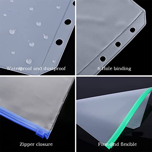 24 Pezzi Borsa per Raccoglitore A6 Cerniera Borsa 6 Fori Trasparente Plastica Cartelle Impermeabile Borsa a Fogli Mobili per Casa Ufficio Forniture Scolastiche