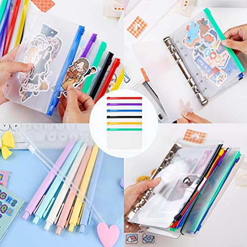 Contenuto della confezione: contiene 24 pezzi A6 sacchetti per cartelle trasparenti a 6 fori 6 colori sacchetti con cerniera 4 pezzi per colore Adatto per ufficio, studio e uso quotidiano.