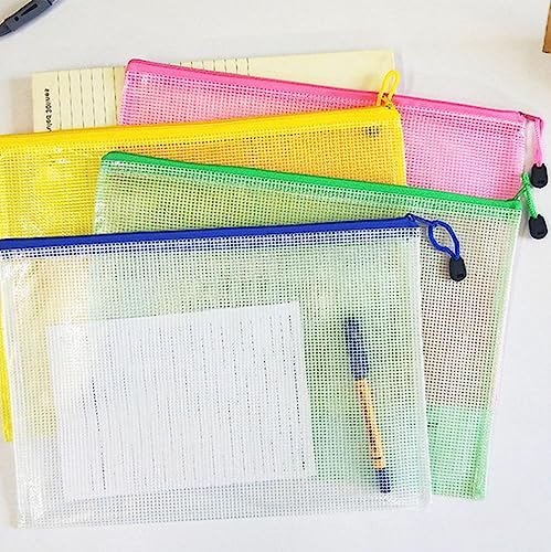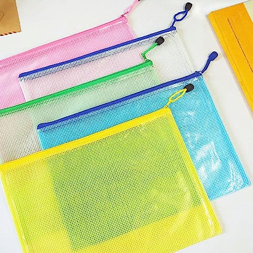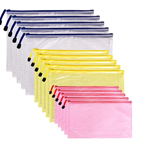 15 Pezzi Borse di File A4+A5+A6, Sacchetto di Zip in Plastica a Rete, Borse con Cerniera Impermeabili per File,Cosmetici e Viaggi, 3 Colori