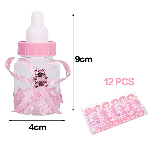 12 Pezzi Bottiglie di Caramelle,Biberon Portaconfetti Vasetto Caramelle, Scatola Regalo Decorazione Per Baby Shower Battesimo Nascita Favori Di Nozze Rosa