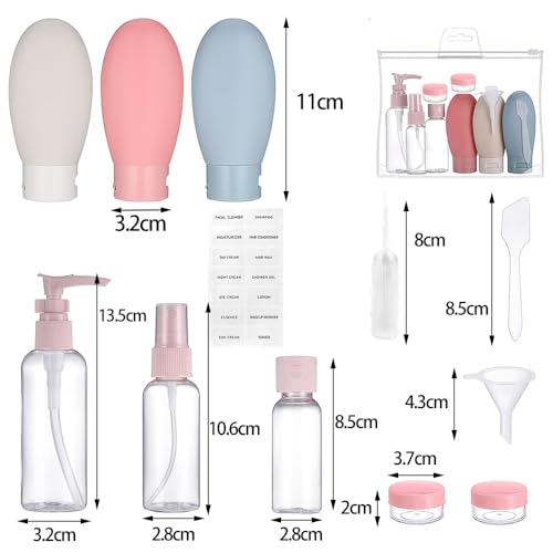 12 Pezzi Bottiglie da Viaggio,Flaconi da Viaggio in Silicone a Prova di Perdite con Borsa,Set da viaggio portatile per Shampoo Bagnoschiuma Liquidi Lozione