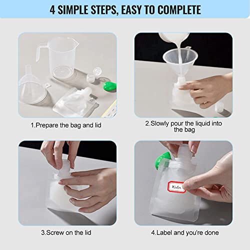 Include: 21 sacchetti cosmetici contenenti cosmetici liquidi e 24 adesivi. Ci sono tre diverse dimensioni di borse tra cui scegliere: 8 30ml, 8 50ml e 5 100ml, che sono sufficienti per soddisfare le vostre esigenze quotidiane. Le etichette consentono di identificare con precisione i liquidi dello stesso colore.