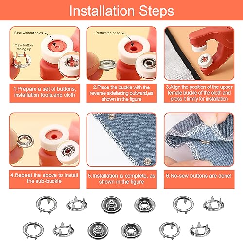 【Materiale affidabile】Il Bottoni a Pressione Metallo è in acciaio inossidabile e le pinze per bottoni sono in plastica, la parte in gomma bianca delle pinze è utilizzata per tenere i bottoni in posizione, il nostro set di bottoni è robusto e durevole, non facile da arrugginire, ad alta resistenza, non facile da deformare, può essere utilizzato per lungo tempo.