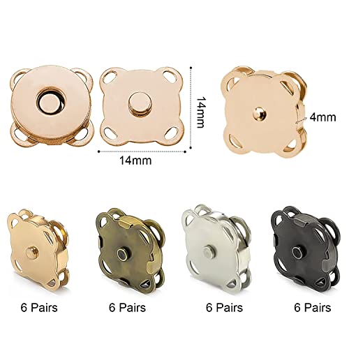 24 Pezzi Bottoni Magnetici Set, A Scatto Bottoni Calamita Metallo da 14mm, Borse Bottone Magnetico per Borse, Vestiti,Bagagli, Abbigliamento,Cucito, 4 colori