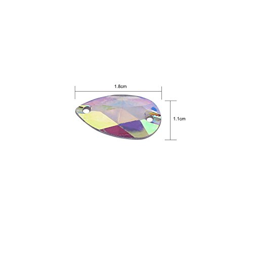 200 pezzi bottoni con strass, 2 colori flatback in resina acrilica da cucire su accessori in cristallo a forma di lacrima con 2 fori per decorazioni artigianali fai-da-te (colore AB)
