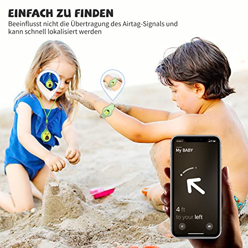 【Protezione completa】Doppia protezione, il guscio alto a sfera è resistente agli urti, antigraffio, resistente al sudore, lavabile, impedisce che l'Airtag cada accidentalmente e si graffi e impedisce che l'AirTag rimbalzi. Mantiene il vostro Air Tag sicuro, indipendentemente dall'attività che si svolge durante il trasporto. Lasciate che i vostri piccoli godano la spiaggia, la piscina e il parco giochi.