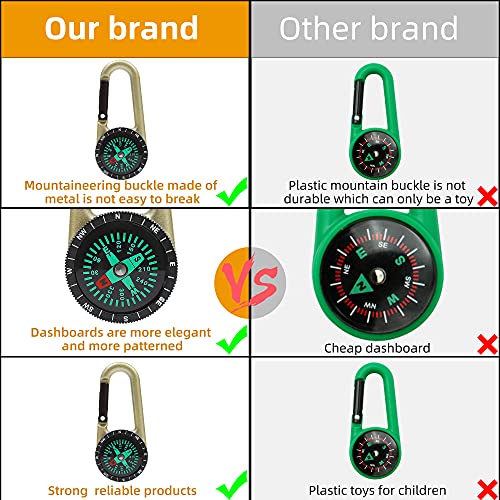 【Design 2 in 1】: funge anche da bussola e moschettone. Come moschettone, viene spesso utilizzato per appendere bottiglie d'acqua, binocoli, ombrelli e altri oggetti nelle attività all'aperto che possono essere utilizzati anche per appendere piccoli oggetti come chiavi e maschere. Come bussola, può aiutarti a trovare indicazioni in natura.