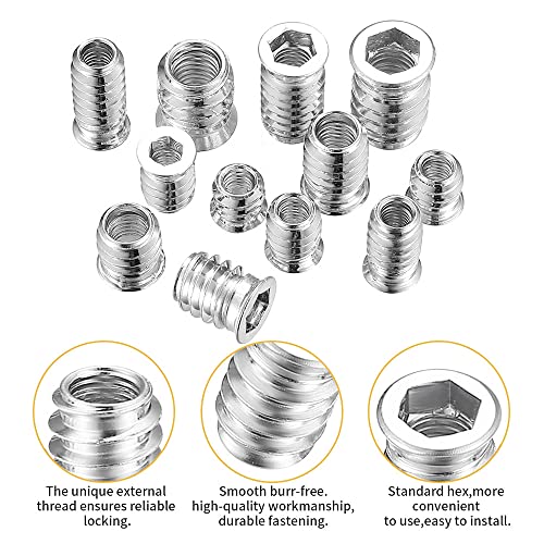 100 Pezzi Bussole a Vite M6 M8 M10 Dadi a Vite in Acciaio Zincato Bussole con Bordo Sovrapposto Bussola Esagonale Inserto in Legno Dadi Inserto Filettato Set Esagonale per Mobili in Legno