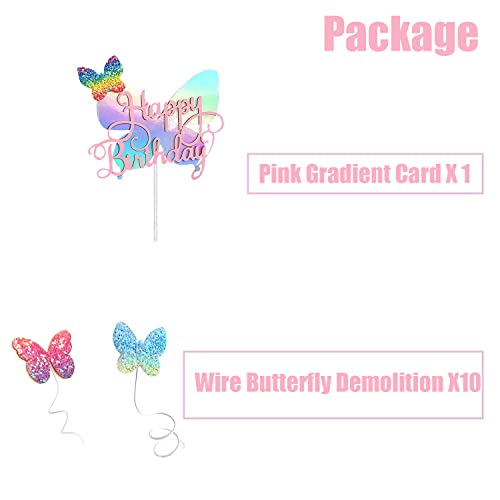 【Set di decorazioni per torte】: la confezione contiene 10 pezzi di toppers per torta di piccole farfalle color arcobaleno e 1 pezzo di torta grande per farfalle di buon compleanno, quantità sufficiente per creare una bella composizione.