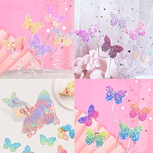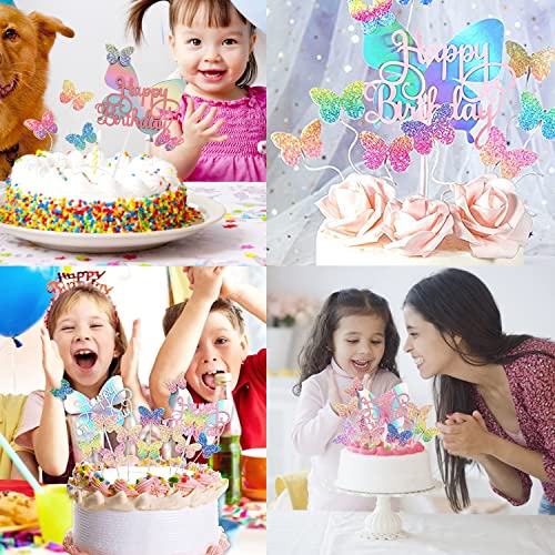 【Design glitterato colorato】: i caratteri "Happy Birthday" sono stampati sugli inserti a forma di farfalla per rendere il tema facile. La farfalla in piedi sulla torta è viva sotto le luci e regala alle persone un'atmosfera felice e onirica.