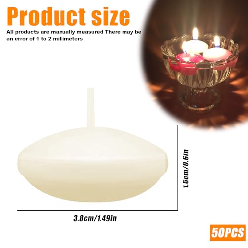 50 Pezzi Candele Galleggianti, Luci Galleggianti Bianche, Candele Decorative, Ø 38 Mm Galleggianti In Cera Bianca Per Compleanno, Matrimonio, Piscina, Spa, San Valentino, Vasca Da Bagno(Bianco avorio)