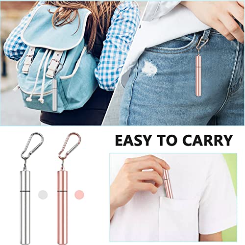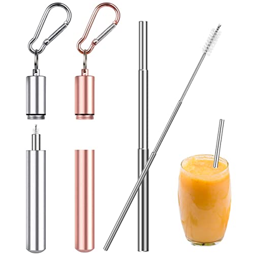 2 Pezzi Cannucce Telescopiche in Acciaio Inox, Cannucce Telescopiche Portatili, Cannucce Portatili in Metallo, per Spazzole per la Pulizia e Scatola di Metallo, Lavoro, Idea Regalo
