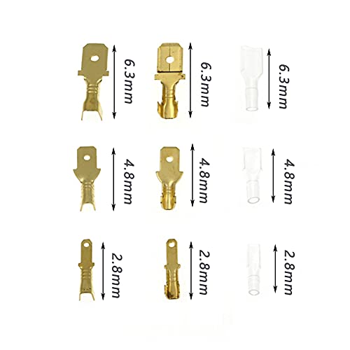 ❤Selezione del Prodotto: Inclusi 180 terminali a crimpare, 90 manicotti isolanti, 270 pezzi in totale, modello 2,8 mm / 4,8 mm / 6,3 mm e la quantità è sufficiente per l'uso quotidiano.
