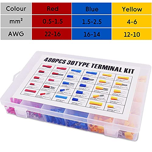 ★ La Confezione Include: I nostri connettori a crimpare hanno 480 pezzi in totale, con 3 colori diversi, 30 tipi di capicorda isolati, troverai la spina giusta per quasi tutti i progetti di cablaggio elettrico.