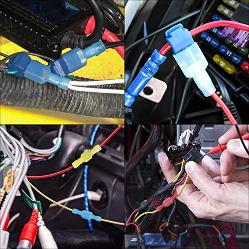 Sicuro e veloce: Design stampato con isolamento di sicurezza, questi connettori elettrici T-Tap auto-spellanti consentono un inserimento rapido, facile e affidabile dei cavi esistenti.
