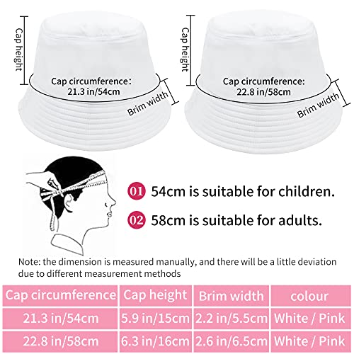 2 Pezzi Cappello Pescatore Pieghevole Cotone Cappellino Sole Benna Allaperto Fisherman Hat Faccina Trendy Cappello alla Pescatora con Adorabile Adulto (as6, Alpha, m, l, 标准, Rosa Bianco, M)