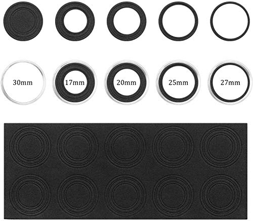 Contenitore di diverse dimensioni: 5 diverse dimensioni di cerchi da 17 mm, 20 mm, 25 mm, 27 mm e 30 mm, adatto per la maggior parte dei tipi di monete.