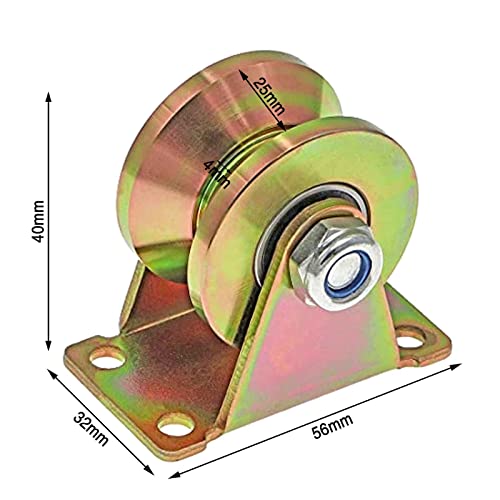 Forte capacità di carico: carrucola 25 mm da avvitare con fori di fissaggio, la fessura della carrucola 25 mm è una scanalatura a V, il carico massimo è di 150 kg.