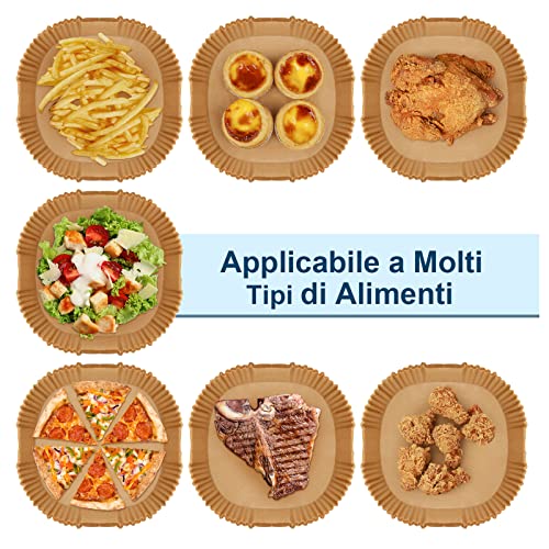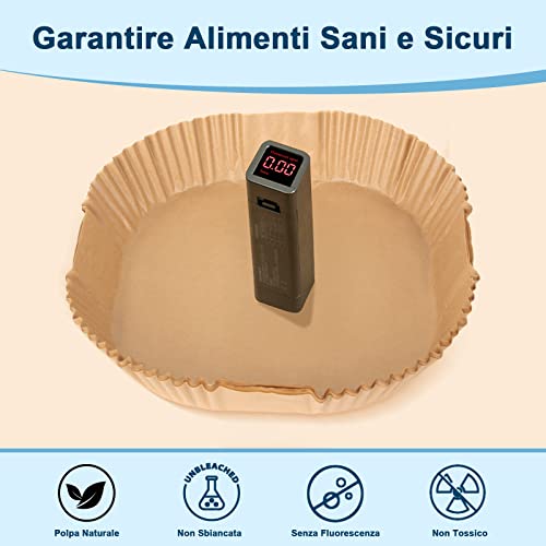 ✔ Mantiene Pulito il Friggitrice ad Aria: Alto 4,5cm carta forno monouso impedisce che residui di grasso e cibo rimangano nel friggitrice ad aria, non è necessario lavarlo dopo l'uso, prolunga la vita del friggitrice.