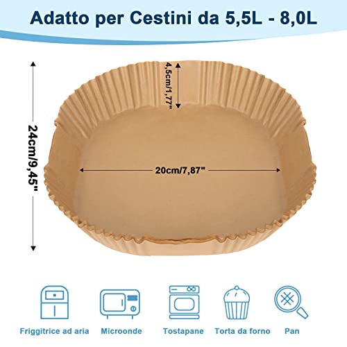 100 Pezzi Carta Forno per Friggitrice ad Aria, Stone TH 20cm Carta Pergamena Fodera per Friggitrice ad Aria per 5,5L - 8,0L Air Fryer, Padelle, Forno
