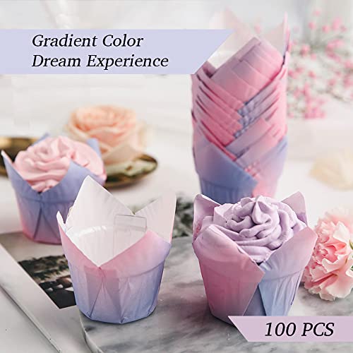 100 Pezzi Carta per Muffin, Tulip Cupcake Liners Pirottini, Pirottini per Muffin, Resistente All'olio, Tulip Pirottini di Carta Muffin per la Cottura di Torte, Matrimoni, Compleanni, Feste