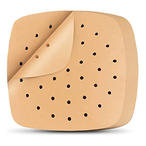 50 Pezzi Carta Pergamena Fodera per Friggitrice ad Aria, 18 x 18cm Carta Pergamena Perforata, Carta Forno per Friggitrice ad Aria, Carta per Friggitrice ad Aria, per Friggitrice ad Aria (Colore Legno)