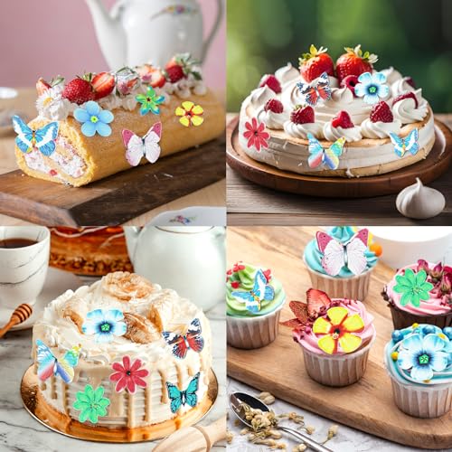 100 pezzi di carta da pranzo, decorazione per torte, fiori, farfalle, fiori commestibili, decorazione per torte, foglie di palma, decorazione per torte, fiori commestibili per matrimoni, baby shower,