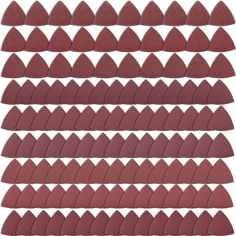 e 120#, 150#, 180#, 240#, 320#, 400#, 15 fogli per ogni grana Dimensioni: 80mm x 80mm x 80mm, adatto per multiutensile oscillante triangolare Materiale premium: i fogli abrasivi SIQUK sono realizzati in ossido di alluminio abrasivo, resistente e antistatico, maggiore è la grana, più fine è l'effetto di lucidatura Tecnologia di supporto: i tamponi abrasivi triangolari sono dotati di un gancio e un anello posteriore, che è facile e veloce da attaccare e rimuovere dalla levigatrice. I tamponi abrasivi triangolari aiutano a raggiungere gli angoli stretti, efficace per levigare e lucidare Ampia applicazione: queste carte abrasive sono ottime per la levigatura del legno, usa grana 40/60/80 per legno grezzo, usa grana 120/150/180 per legno generale, usa grana 240/320/400 per la finitura finale del legno, tu può anche usarlo per rimuovere ruggine, lucidare