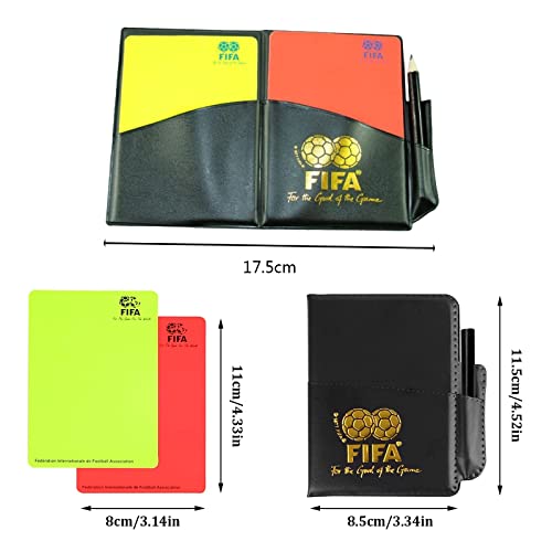 i portafogli delle carte dell'arbitro misurano 17.5 x 12 cm. Lo spazio di archiviazione complessivo è piccolo e può essere portato con te. Ogni set include 1 cartellino rosso e 1 giallo nella custodia a portafoglio, comodo da sostituire una volta mancante 1 set.