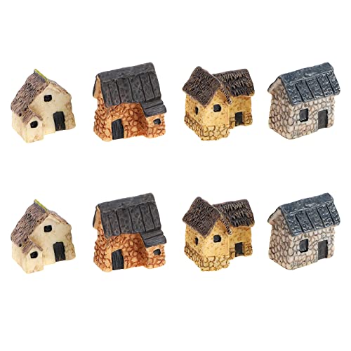 2 Set (8 pezzi) Casa delle Bambole Villaggio Case in Pietra Resina Miniatura Giardinaggio Paesaggio Simulazione Cottage Casa Fata Giardino Decorazione per Casa delle Bambole Decor